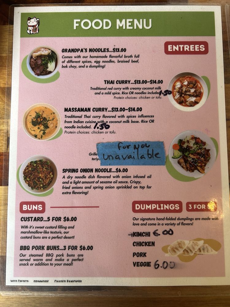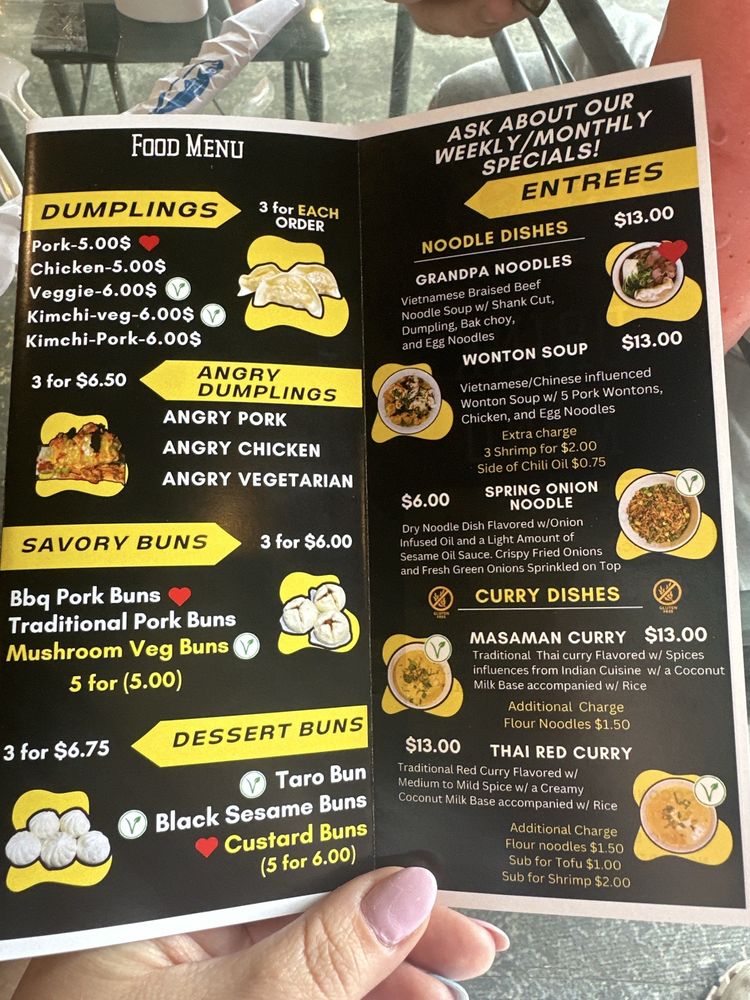 Angry Dumplings Tea, located in Knoxville, TN, is a must-try spot for soup enthusiasts. With options like Jumbo Taro, BBQ Buns, Grandpa's Noodles, and Massaman Chicken, there's something for everyone. Customer reviews rave about the flavorful Angry Dumplings, with one customer praising the tender wrapping and flavorful filling. The owner, Jason, is known for his kind demeanor and hands-on approach with customers. From the plentiful portions to the delicious wonton soup, every dish at Angry Dumplings Tea is made with love and attention to detail. With moderate noise, free Wi-Fi, and dog-friendly policies, this cozy spot offers a welcoming atmosphere for a satisfying dining experience. Don't miss out on trying their signature dishes and experiencing the warmth of this unique food spot.